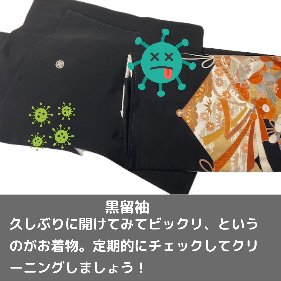 留袖は結婚式やパーティーのためのお着物。開けてみたらカビてた~という方が多くいらっしゃいます。
