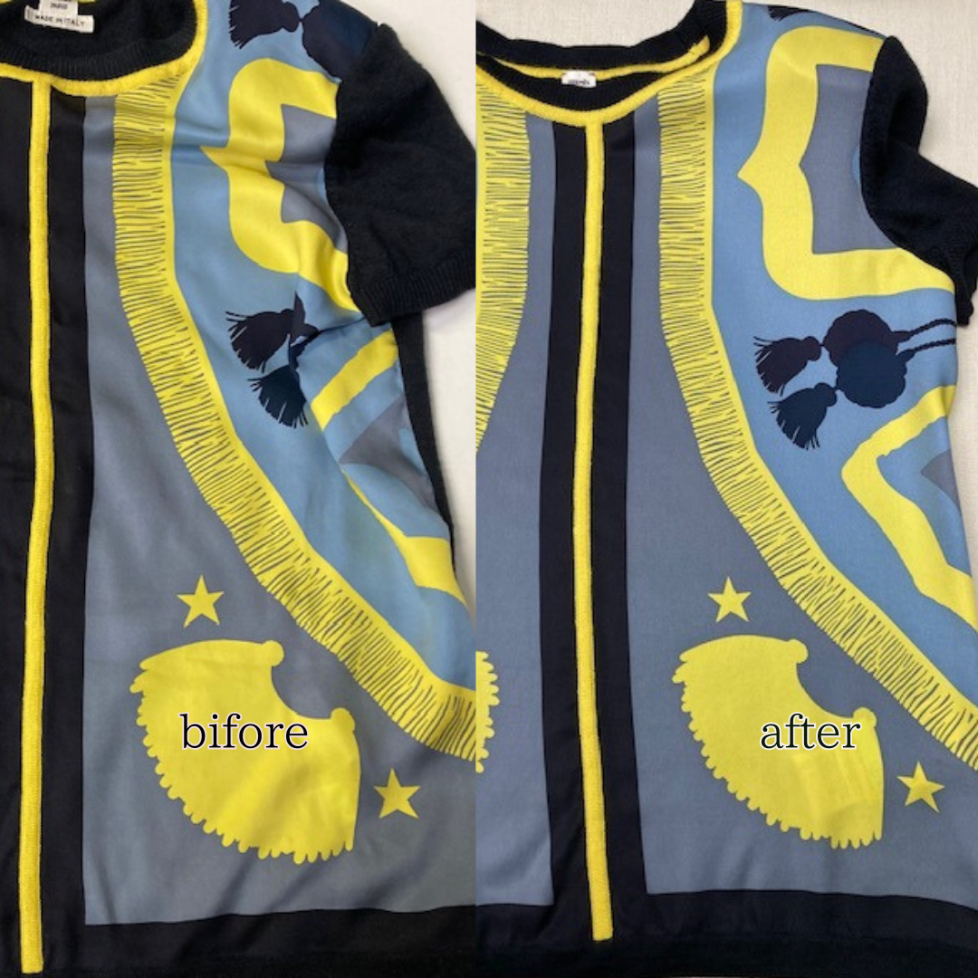 ご家族様に任せられていますが、「ブランド品の高級ブラウスがどこのクリーニングに出してもなかなかきれいにならない」とお嘆きののN様のブラウスでした。今回柳屋さんに出してしてすっかりきれいになりました。