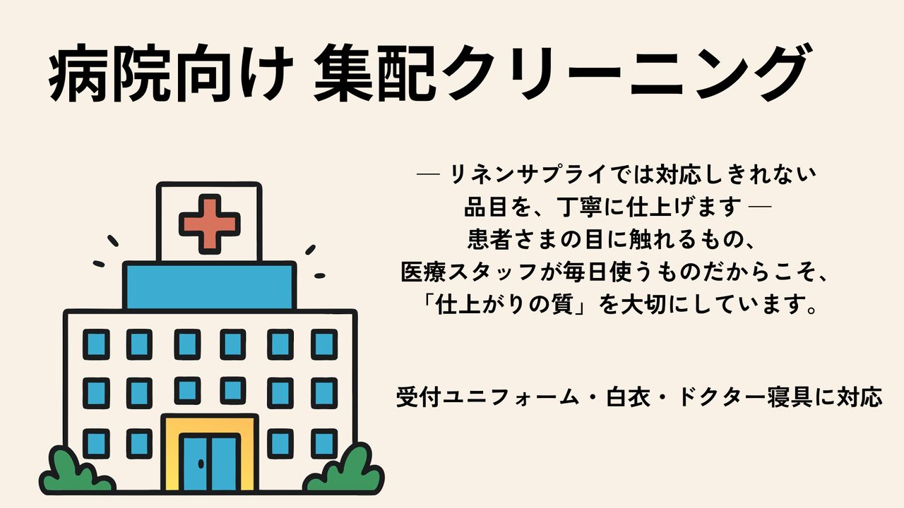 クリニック様の白衣・ワンピース・スクラブなど定期集配も行っています。お気軽にお問合せ下さい!電話 0465-22-4635