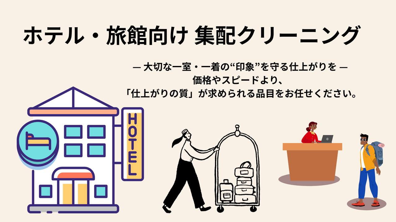 「仕上がりの質」が求められる品目をお任せください。ホテル・旅館さまでは、