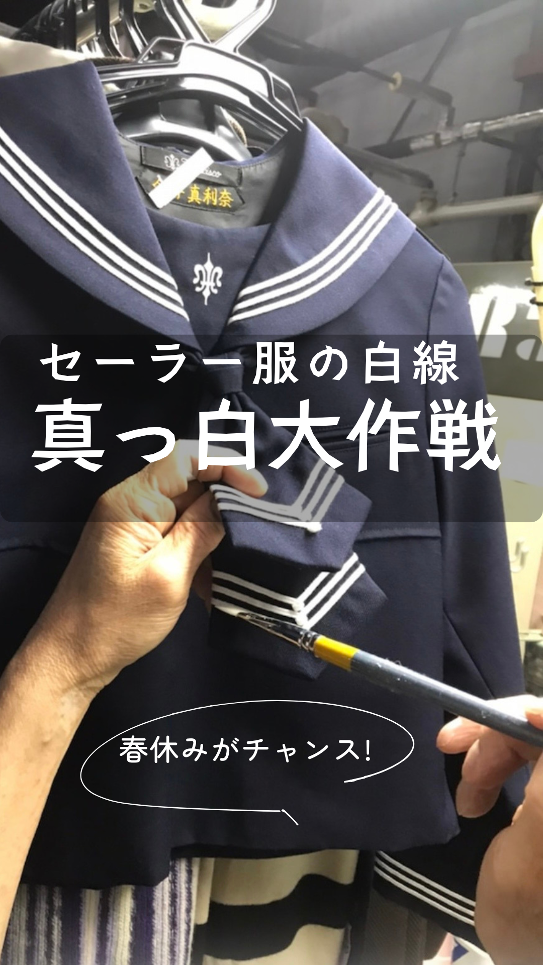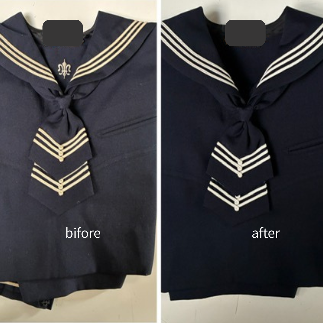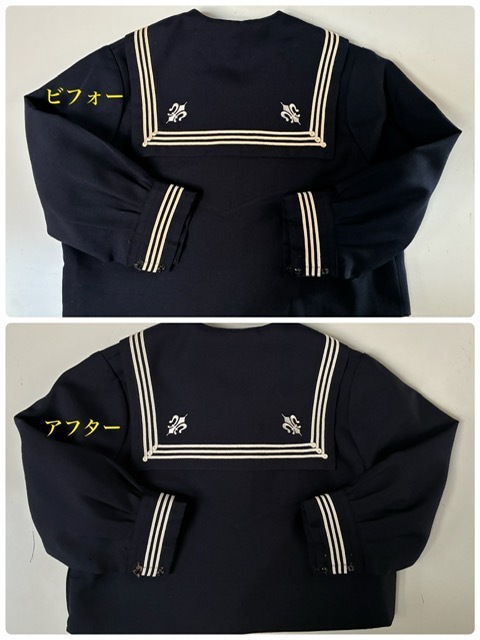 先日は、遠方から宅配便で「セーラー服の白線を白くしてほしい」とご依頼がありました。お姉ちゃんが着たセーラー服だけど妹さんにも着せたいからとのこと。